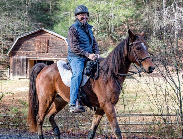 Horses have been with him through life’s chapters. After marrying Vic, he returned to riding and began competing in 50- and 100-mile endurance rides across the country - each finished in a single day. The Biltmore rides remain among his most memorable, held every spring in the shadow of the Blue Ridge Mountains.